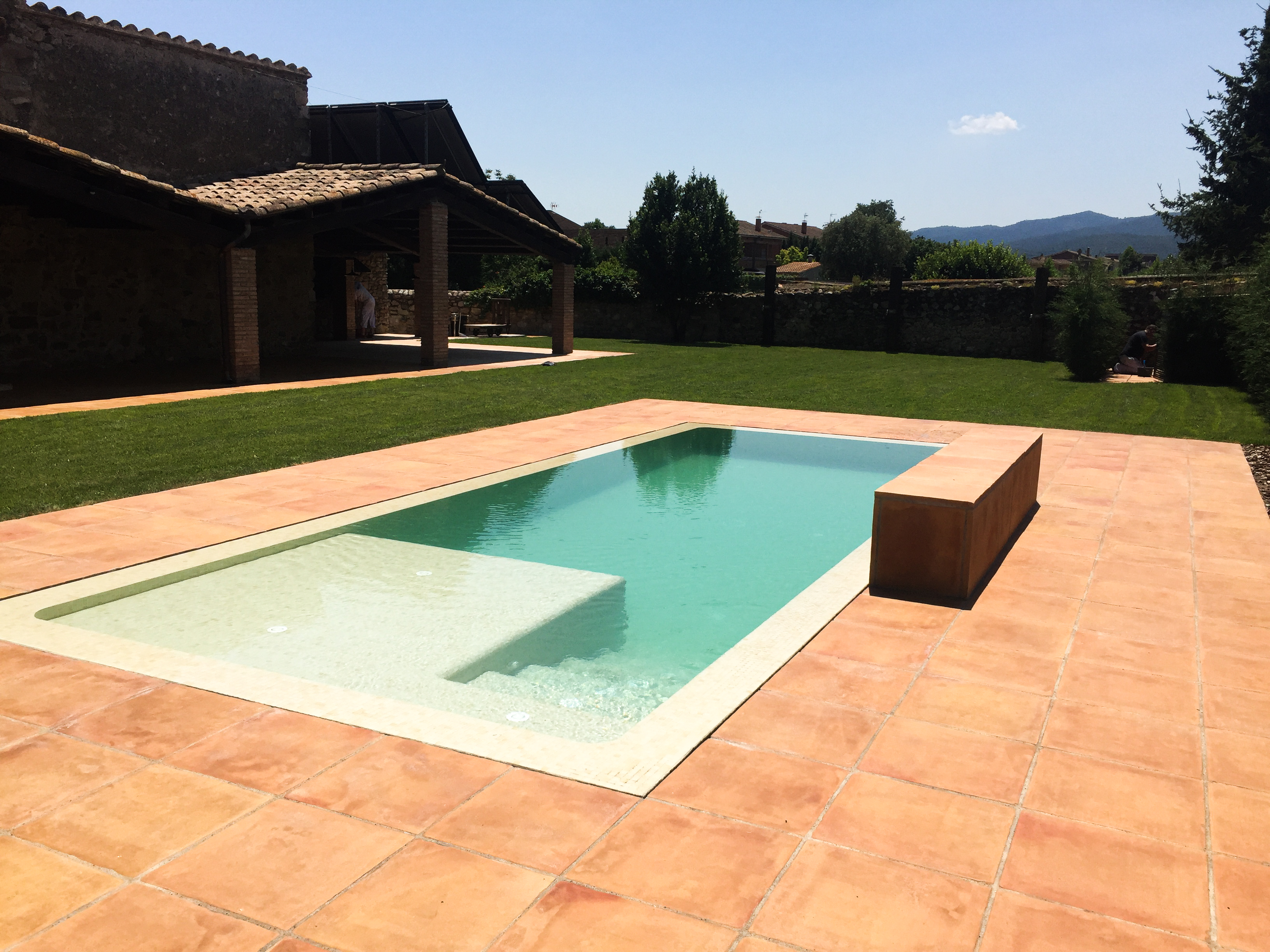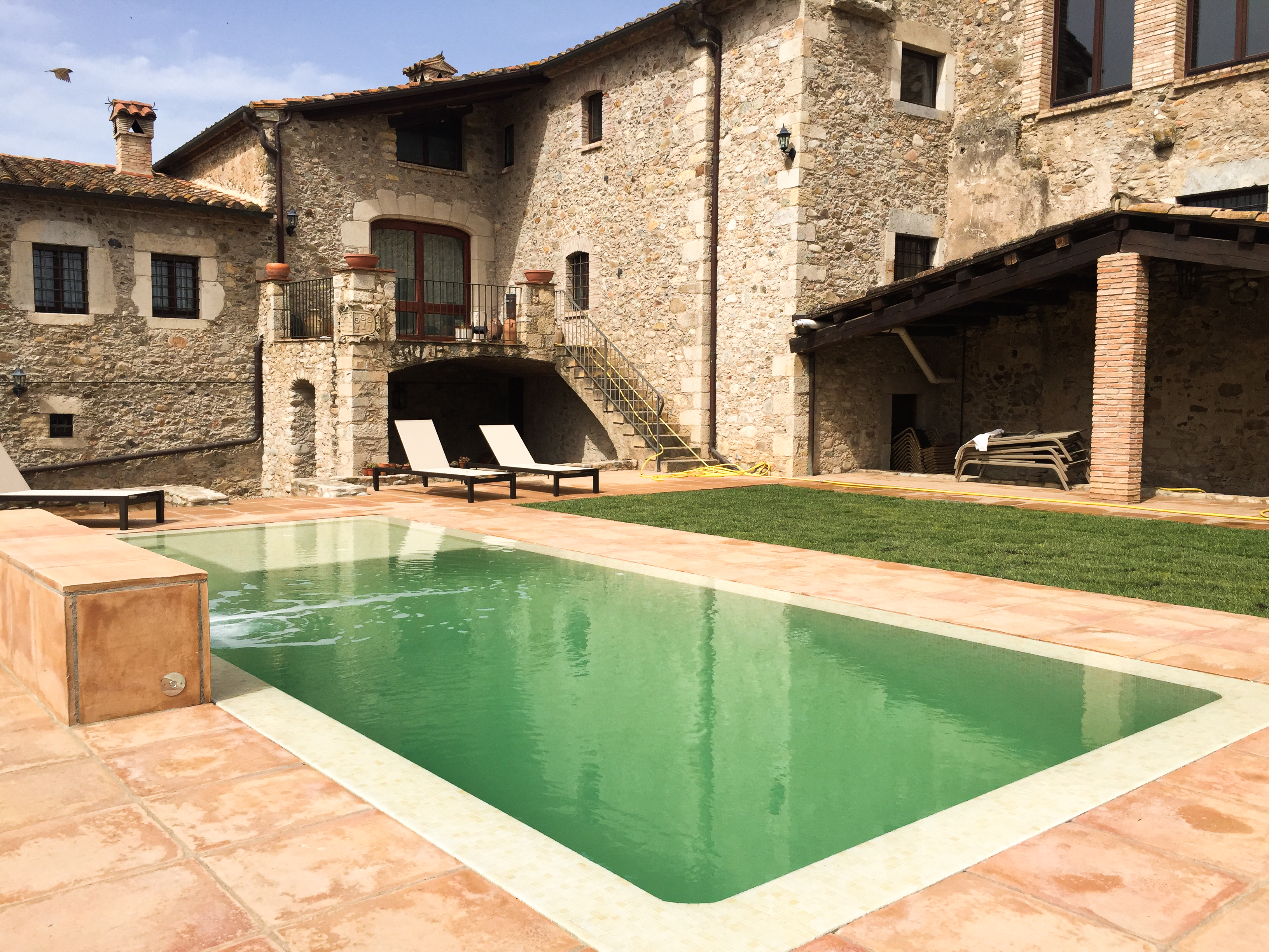 Piscina desbordant construida al pati d’una Masia a Bordils.