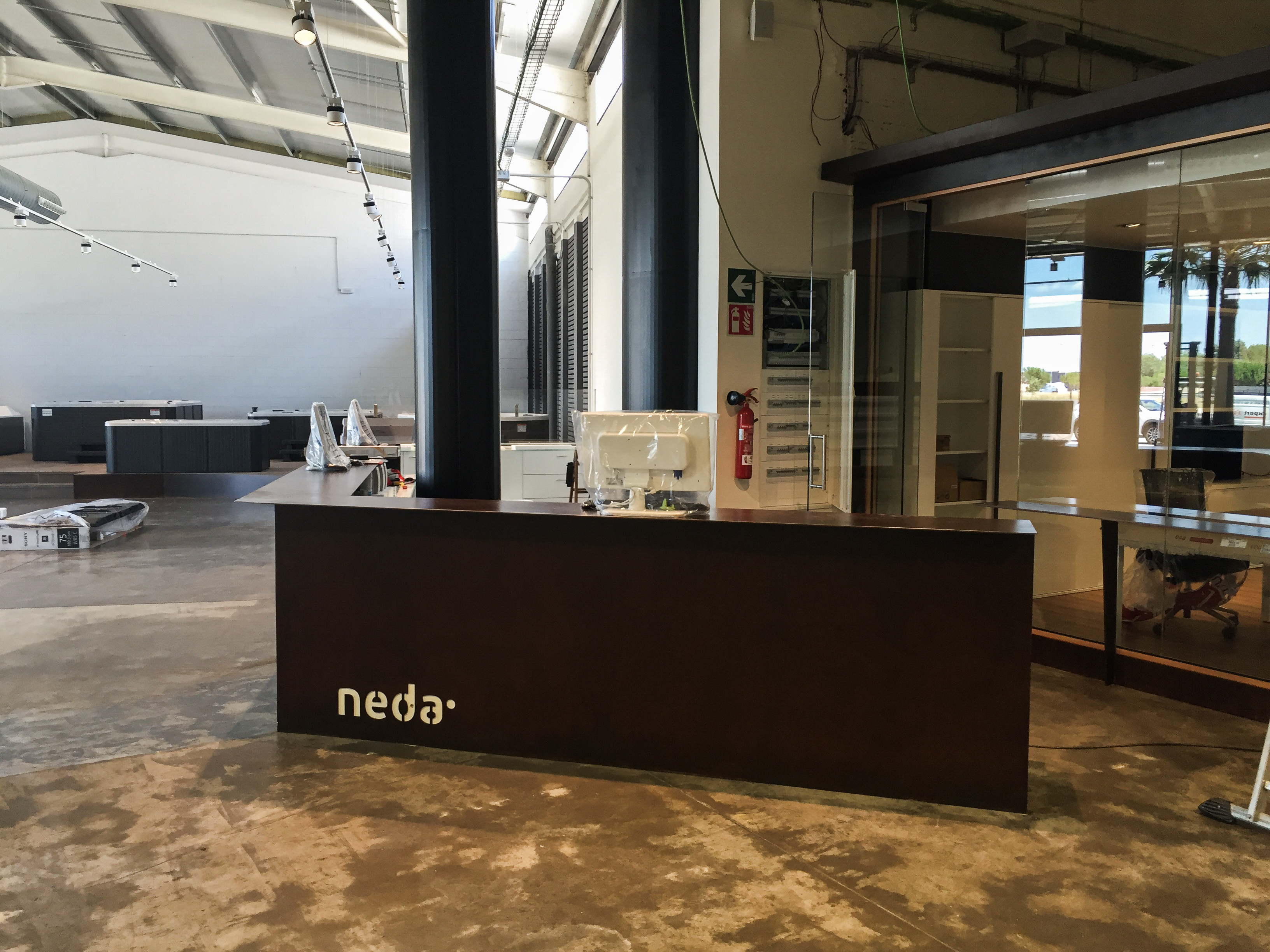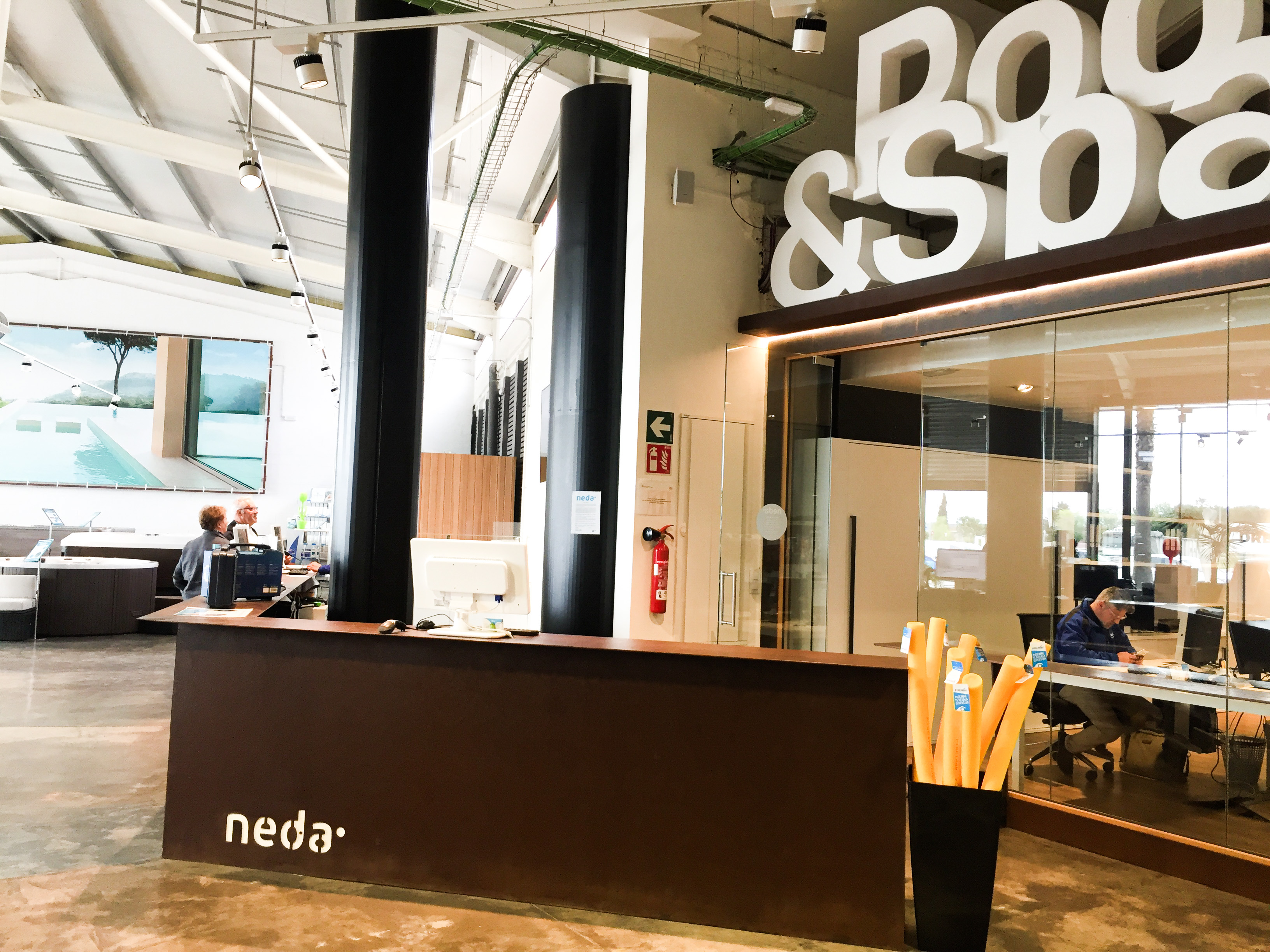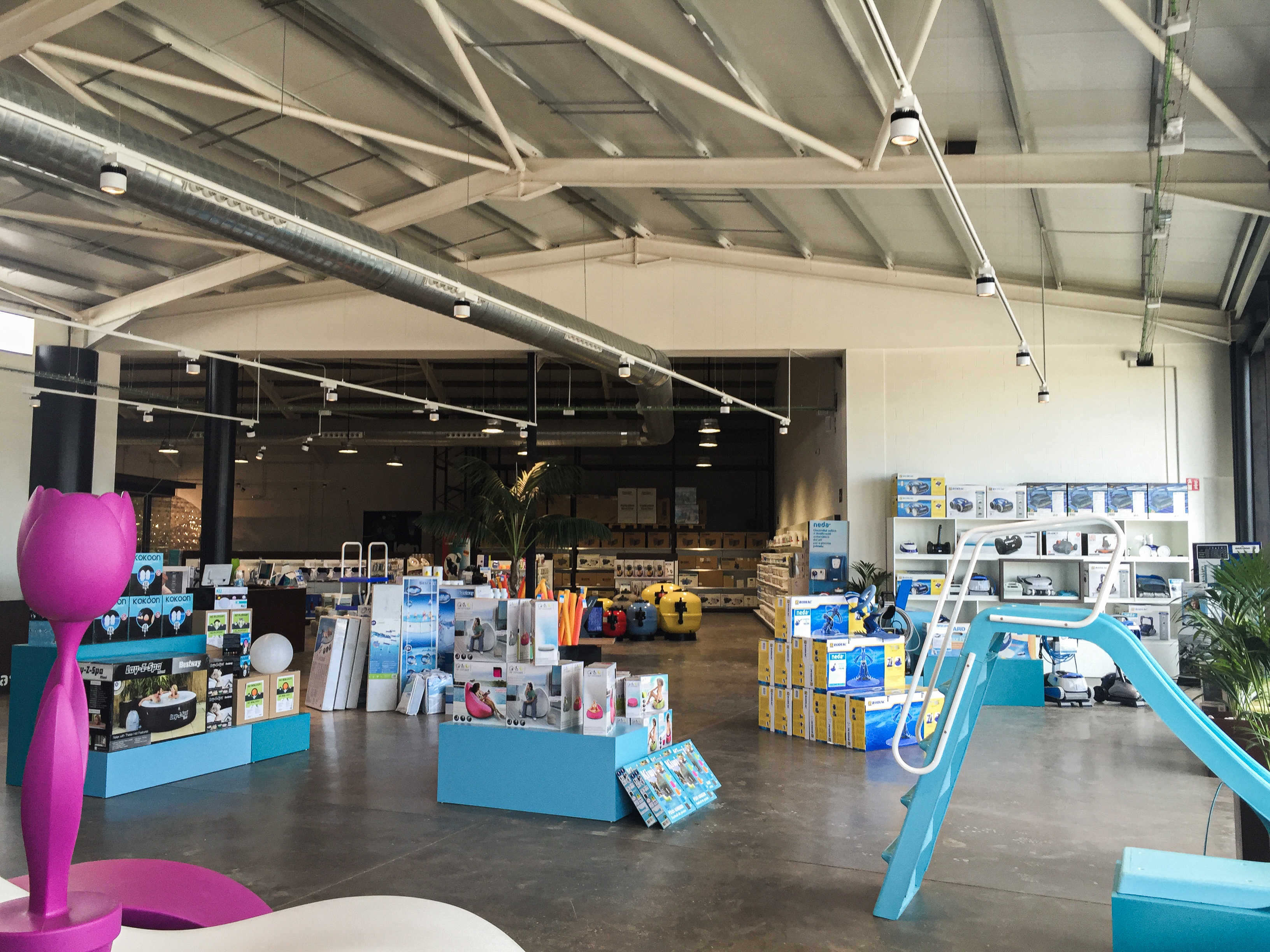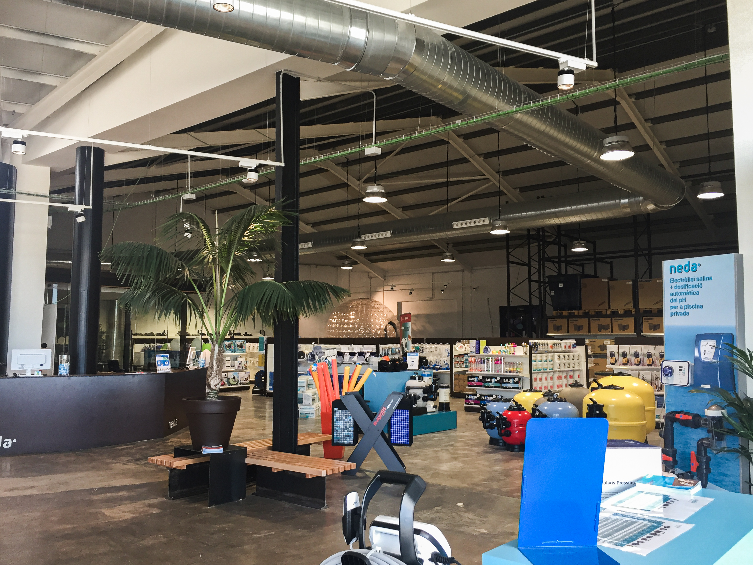 Reforma de nau industrial per covertir-la en una botiga i exposició de piscines a Vilasacra.